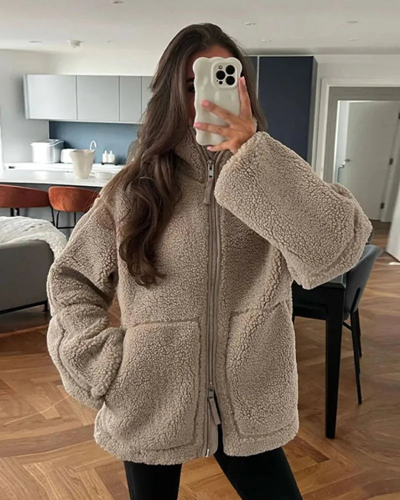 El Abrigo Alicia combina la suavidad del tejido aterciopelado con un diseño moderno y sofisticado. Su corte fluido y su textura envolvente te ofrecen una sensación de abrigo sin renunciar al estilo.
