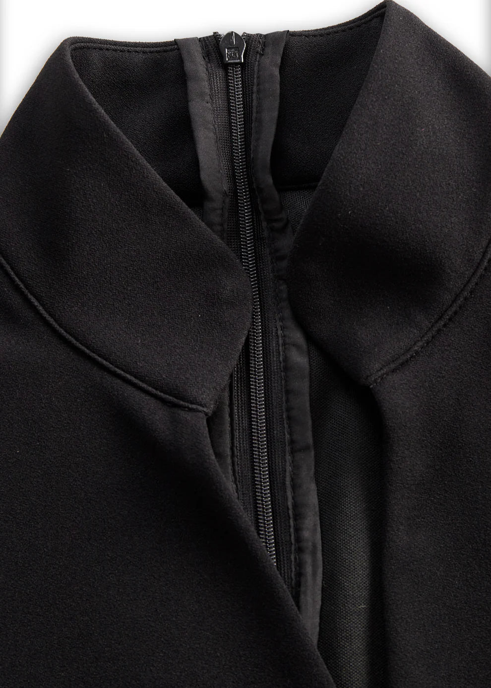 Las mangas tres cuartos, las bolsillos funcionales y la cremallera invisible reflejan la atención por cada acabado, elevando la prenda a un nivel de sofisticación superior.