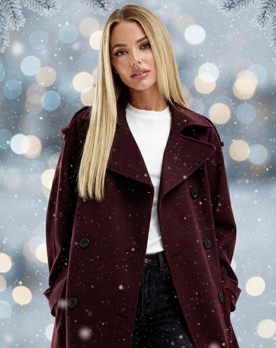 La gabardina Nora se ha convertido rápidamente en nuestro mayor éxito en ventas. Con un corte moderno y materiales de primera calidad, combina elegancia atemporal y diseño contemporáneo. Su tono burdeos profundo la convierte en una pieza esencial para un estilo refinado y distinguido.